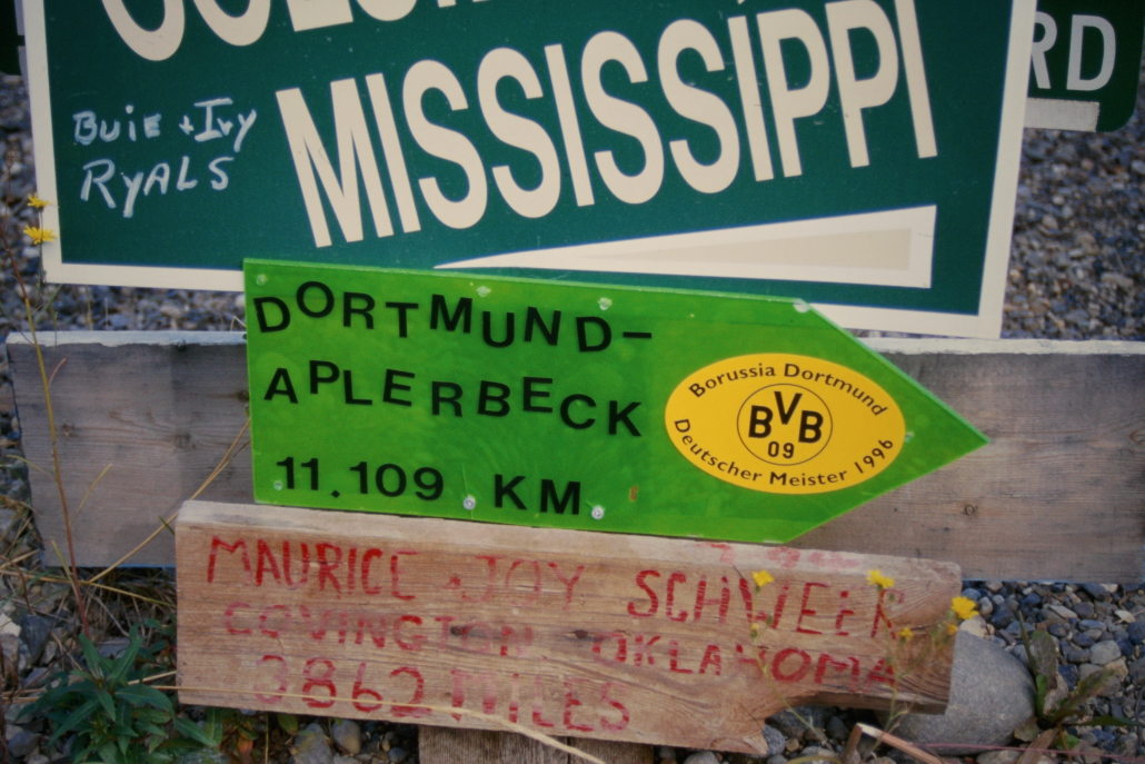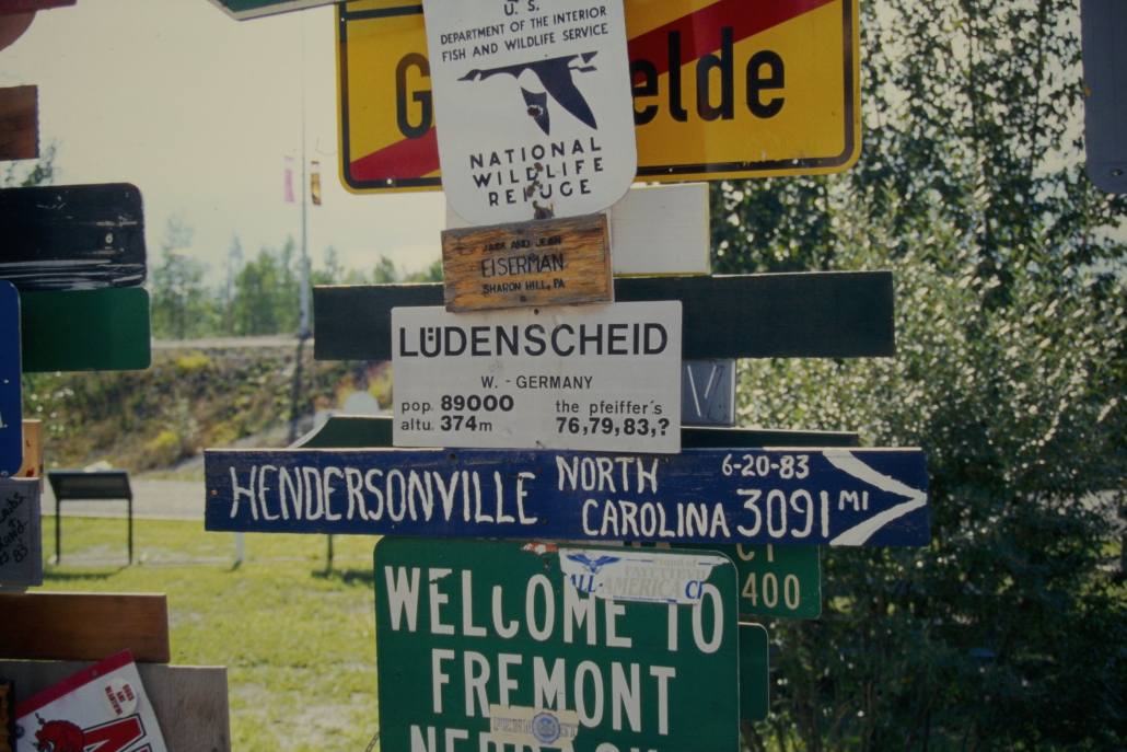 Ein US-Soldat namens Carl K. Lindley war damals in Watson Lake stationiert. Als er einen Wegweiser reparieren sollte, fügte er spontan ein Schild mit der Aufschrift „Danville, Illinois“ hinzu – seinem Heimatort.